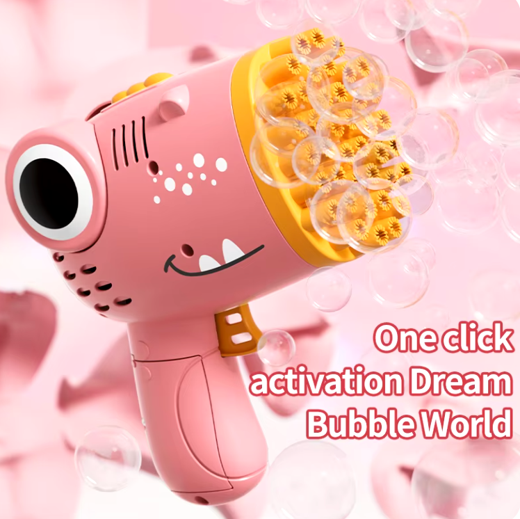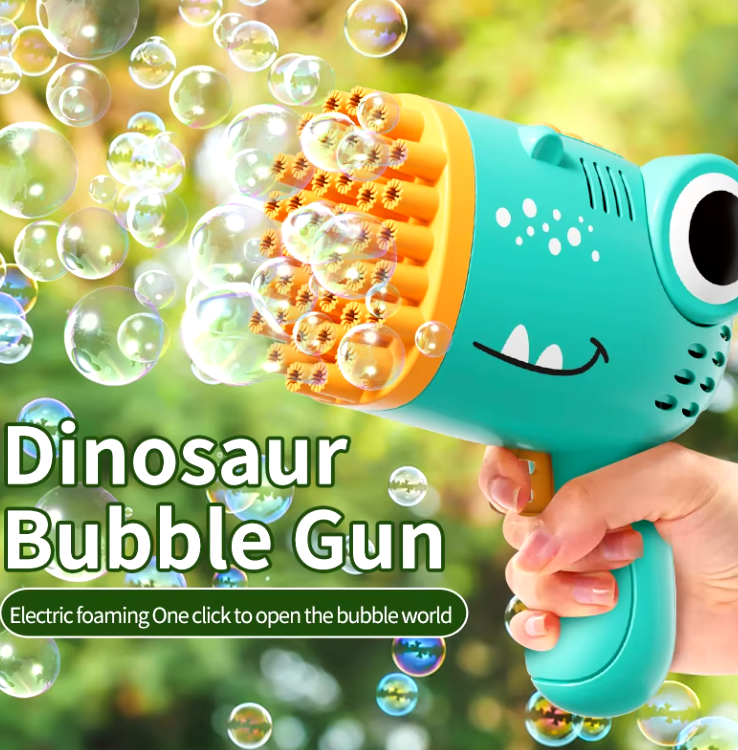 Denna fantastiska dinosauriebubbelpistol är designad för att ge timmar av underhållning för barn. Med 40st hål skapar den en imponerande mängd bubblor på nolltid, vilket gör den till en perfekt leksak för utomhuslek eller fester.