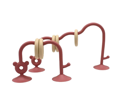 Letar du efter en säker och utvecklande leksak som håller ditt barn engagerat? Den här silikon ringbanan är lösningen! Med sugproppar på båda ändar fäster du den enkelt på bord eller vägg – så att ditt barn kan leka utan att oroa sig för att den rullar iväg. Perfekt för att träna finmotorik och koncentration, medan de färgglada ringarna ger en rolig och lärorik utmaning.