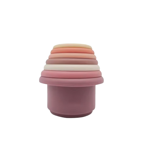 De färgglada kopparna är inte bara roliga att leka med, de hjälper även ditt barn att förstå storlekar, former och sekvenser, vilket stimulerar tidig kognitiv utveckling. Silikonet är både säkert och hållbart, vilket gör leksaken idealisk för både lek och som tuggleksak vid tandlossning.