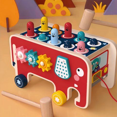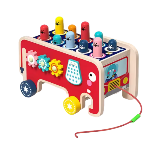 Låt ditt barn upptäcka roliga och utvecklande stunder med detta träspel som stimulerar både lek och lärande. Spelet är utformat som en klassisk “whack-a-mole” med elefantmotiv och hjälper barn att träna hand-öga-koordination, koncentration och problemlösningsförmåga. Perfekt för familjespel där både barn och föräldrar kan leka tillsammans och skapa roliga, interaktiva stunder.