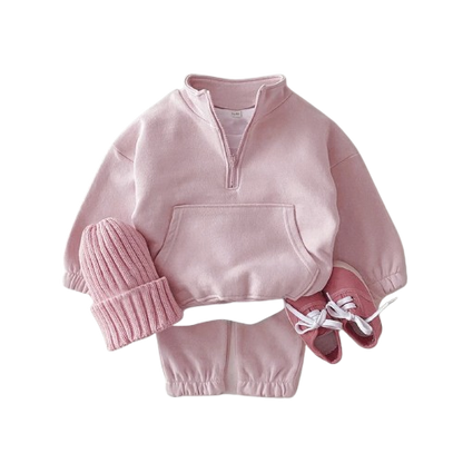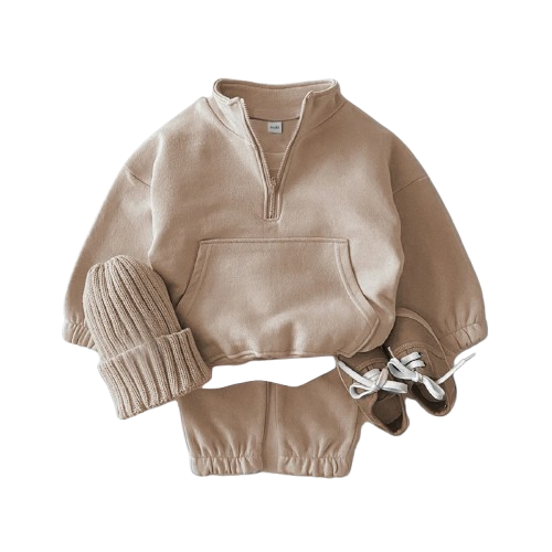 A fantastically stylish set consisting of a sweater with a half-zip and high collar, matched with soft and comfortable pants for ultimate comfort. 💛