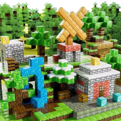 Magnetiska Byggklossar med Minecraftmotiv + förvaringslåda & 2 Figurer - 249 Bitar