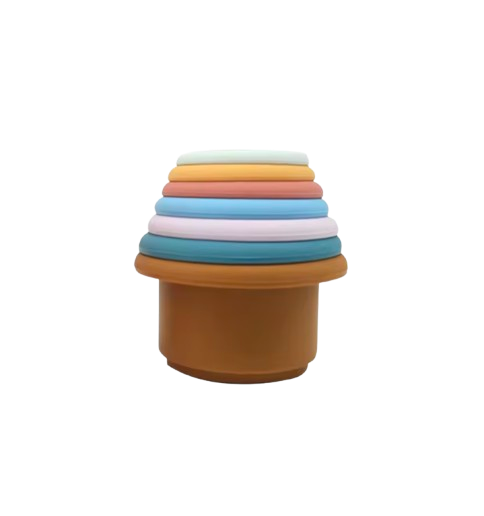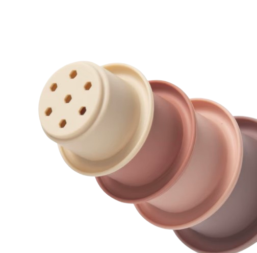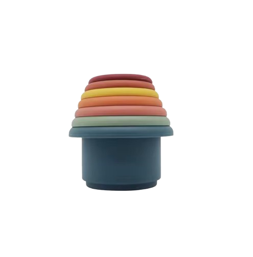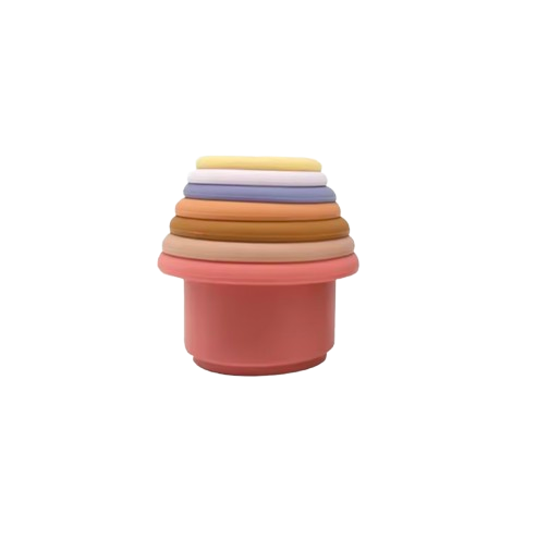 De färgglada kopparna är inte bara roliga att leka med, de hjälper även ditt barn att förstå storlekar, former och sekvenser, vilket stimulerar tidig kognitiv utveckling. Silikonet är både säkert och hållbart, vilket gör leksaken idealisk för både lek och som tuggleksak vid tandlossning.
