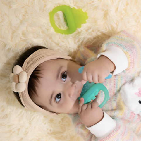 Denna frystuggleksak erbjuder en säker och enkel lösning för att lindra bebisens tandvärk och främja hälsosam tandutveckling.